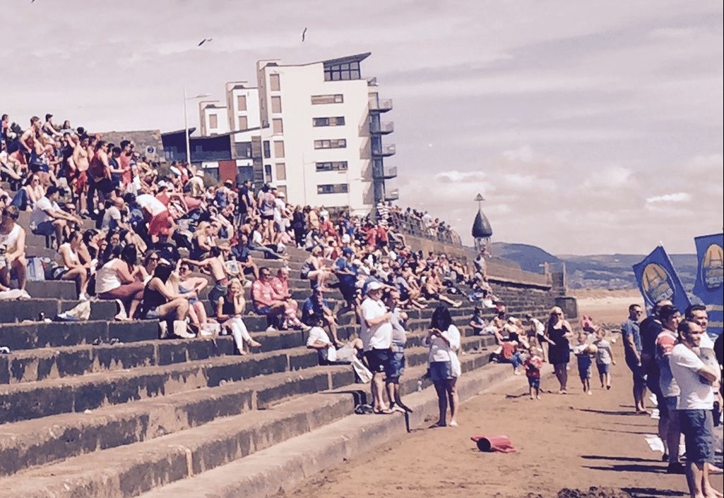 What better way to spend a dry sunny Saturday than on Swansea’s long stretch of beach, just out of the shadow of Swansea’s Meridian Quay tower, watching beach rugby? With plenty to do for the children, pork rolls and other hot food on offer and even a bar bus to quench the thirst of any hardened rugby player.