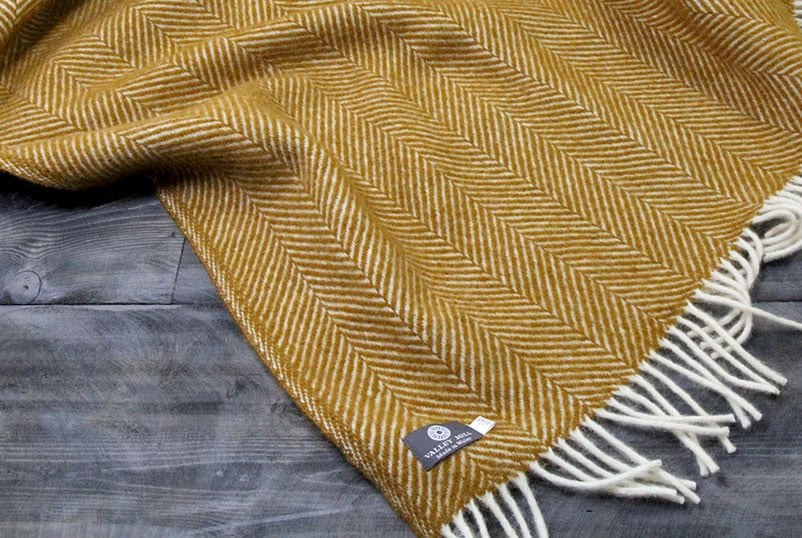 These pure new wool Welsh blankets are our absolute classics. The one pictured is a fishbone weave with the colour being warm and bold. This blanket is finished with soft tassels at either end.